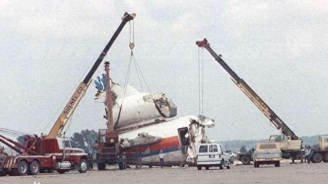 正在被起重机清理的N1819U号客机机尾残骸