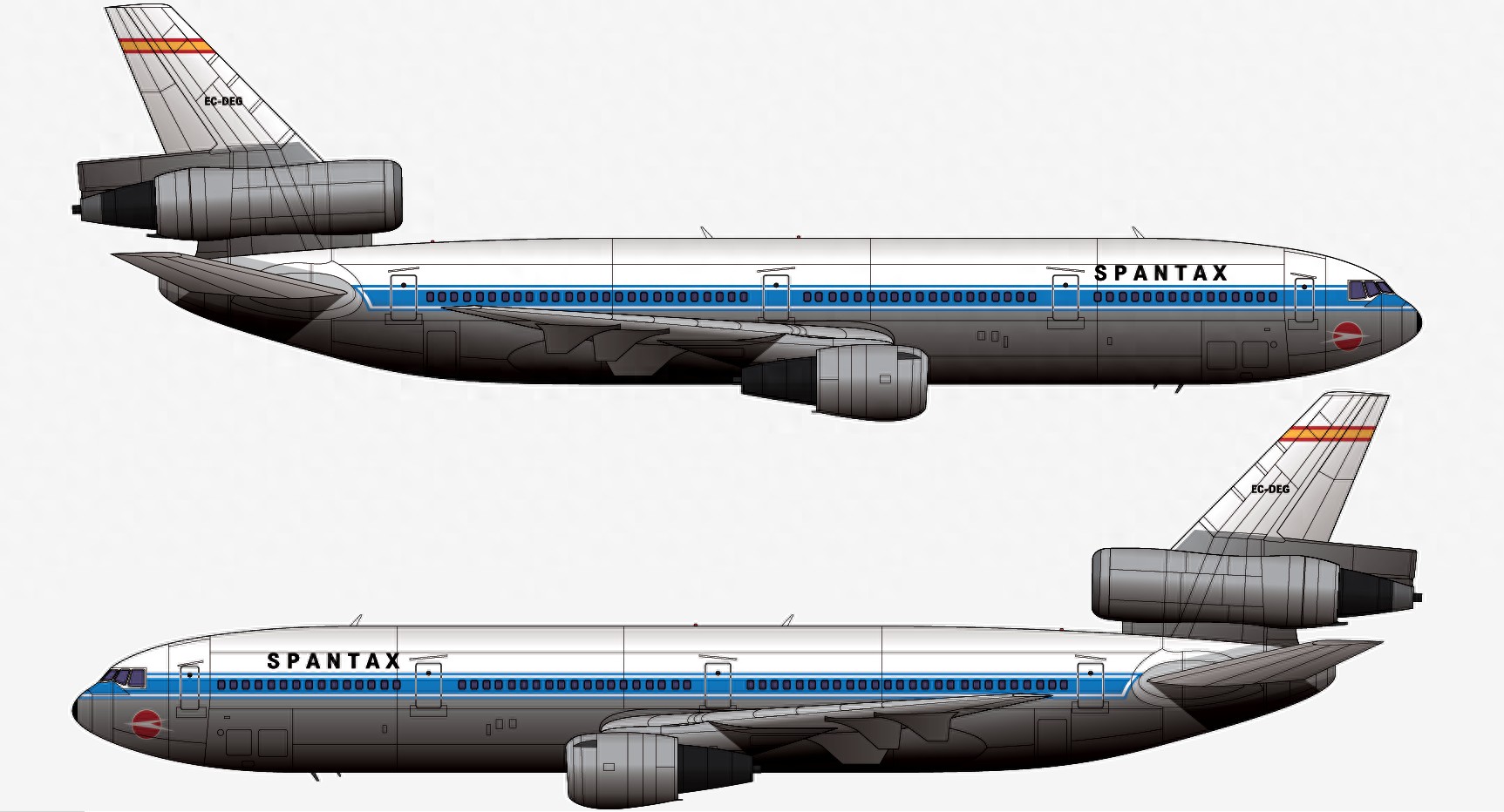 本厂长绘制的达斯航空DS995航班EC-DEG号DC-10-30客机二视图