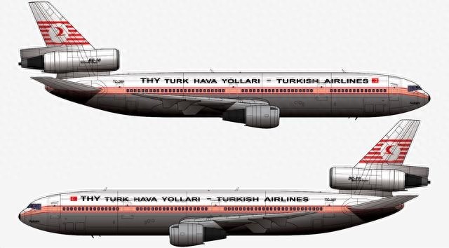 本厂长绘制的土耳其航空TK981航班TC-JAV号DC-10-10客机二视图