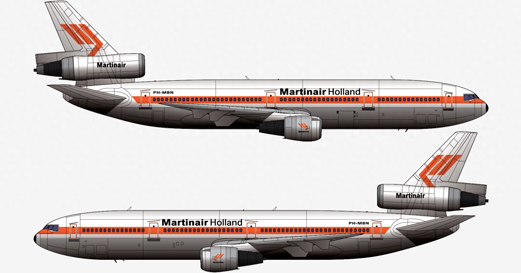 本厂长绘制的马丁航空MP495航班PH-MBN号DC-10-30CF型客机二视图