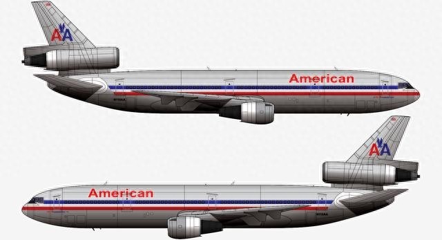 本厂长绘制的美国航空AA191航班N110AA号DC-10-10客机二视图