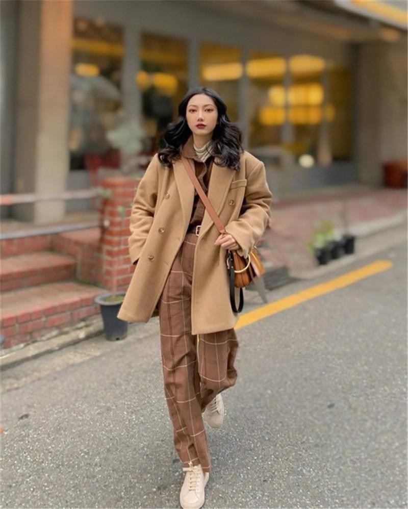 微宽松版型西装外套搭上同色系或基础百搭色系的打底,层次感分明。高腰西装裤或阔腿裤子都可进行搭配,视觉上能够削弱腿粗的缺点,休闲感十足且不失时尚!很适合职场女性或者喜欢韩风休闲搭配的女性,干练中透着气质!