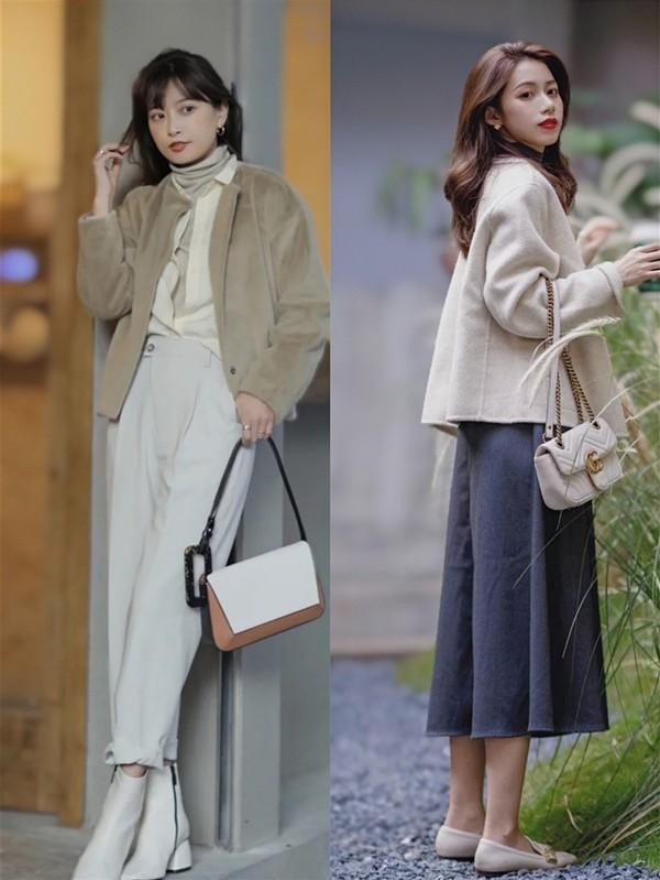 遵循上短下长原则,不要轻易尝试紧身裤子,会非常容易凸显五五分身材比例的缺点,还有oversizes版型的衣服容易显胖。个子娇小的女性可以选择中长款外套+短款内搭+高腰裙,注意裙子及膝的长度刚好,不要过长;没有腰线的长款外套更适合高个子穿,与高腰阔腿的裤子搭配起来更显高挑且提升比例。