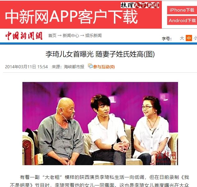 李琦儿女首曝光 随妻子姓氏姓高(图)-中新网
