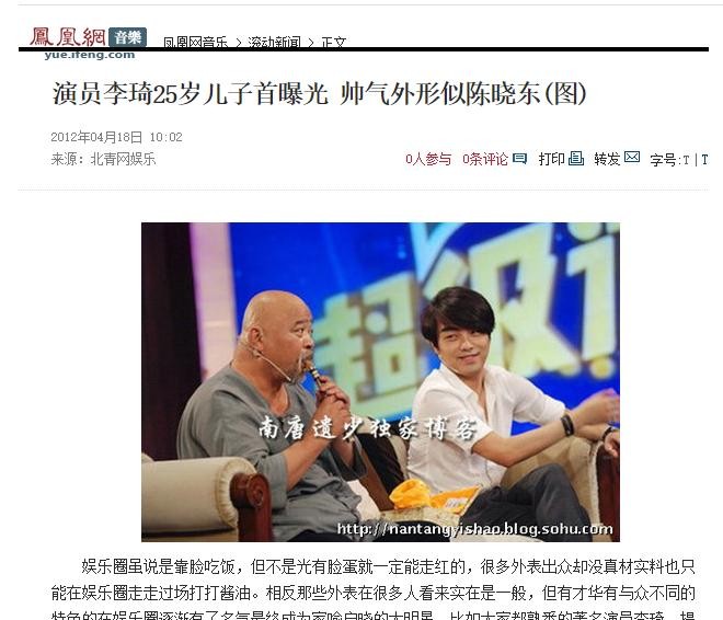 演员李琦25岁儿子首曝光 帅气外形似陈晓东(图)_音乐频道_凤凰网
