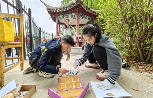 雨水收集桶彩绘、汀步打造和昆虫屋DIY等,给“邻里花园”增添了不少精致的元素。姜家园小学一年级同学张昊宸说:“我平时就喜欢做手工,这次算发挥我的强项了。”