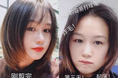 左边的图片是剪完造型后的效果,确实很漂亮,不过这头发剪的还是和原版有些出入,层次没有提的很高,右边是睡醒的样子,头发乱糟糟的变化非常大~人家是有专门的造型师,出门多数会有人设计发型,我们普通人只能自己打理,段位上就明显差了一节。