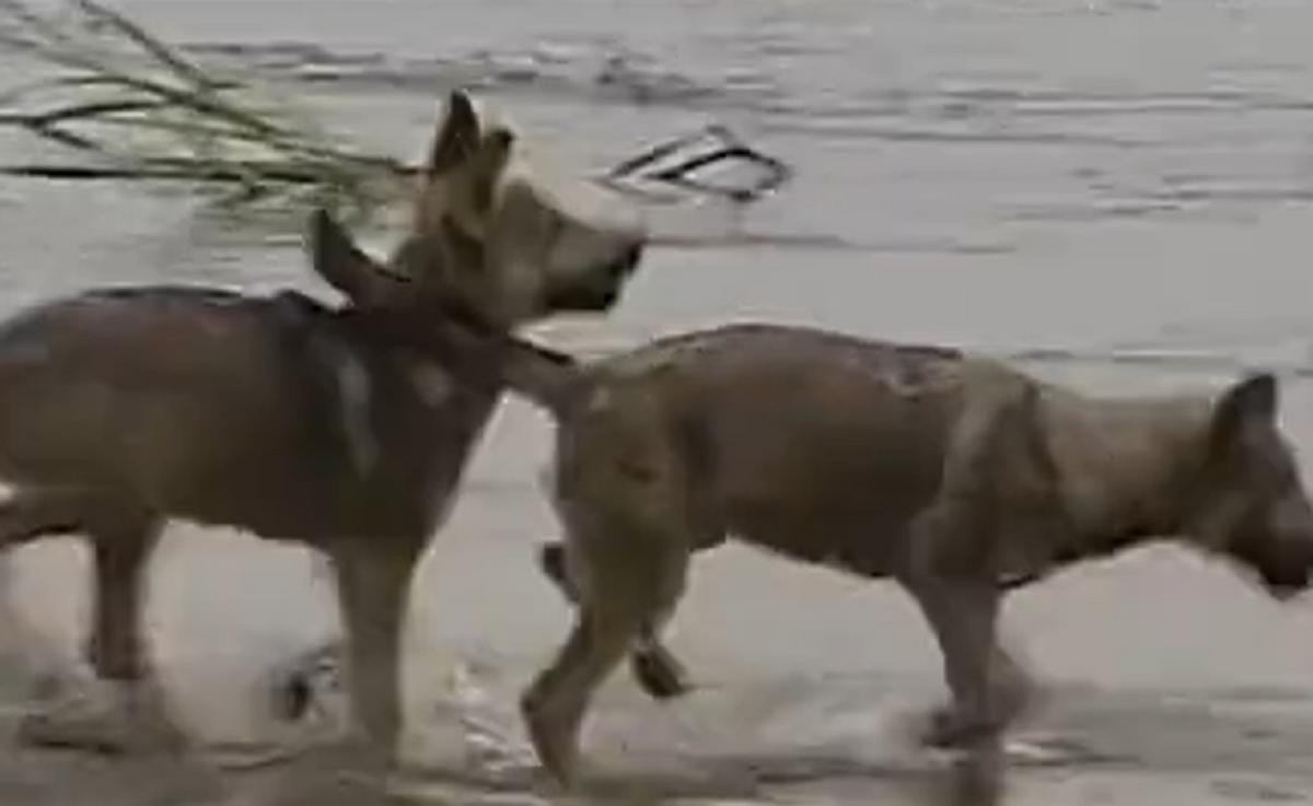 刚开始一切还都风平浪静,母狼虽然表现得有些凶狠,但并没有多大的反应。正当顾奎山一行人觉得这个方式可行时,那只母狼却直接扑到了松狮犬的身上撕咬起来。