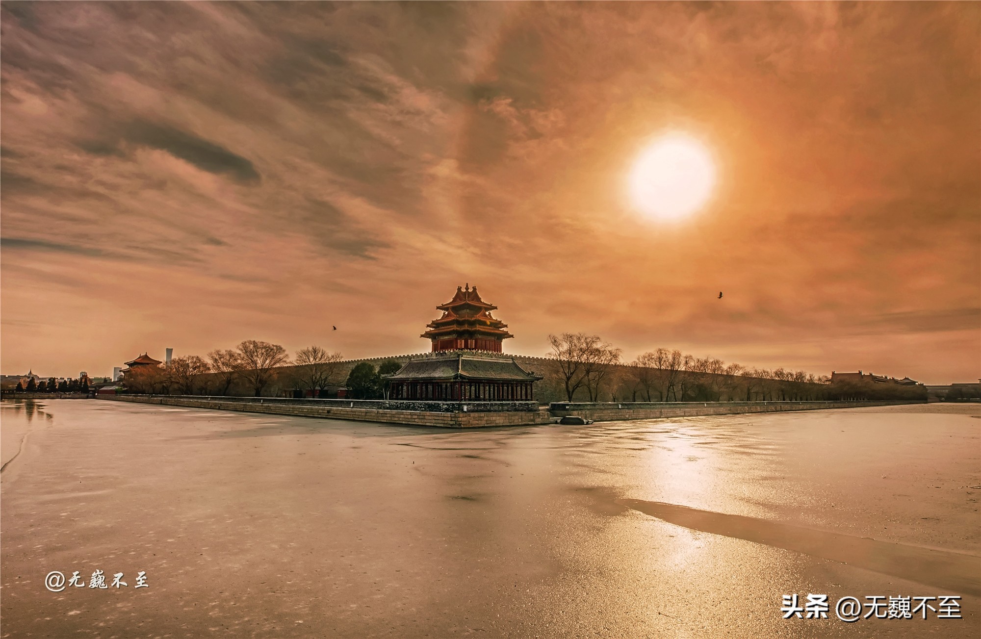 由于故宫角楼的各部分比例协调,檐角秀丽,造型玲珑别致,所以成为紫禁城的标志。日出日落之际,是摄影爱好者云集的地方。在庄严肃穆的宫墙之外,在护城河的衬托下,拍摄角楼很容易寻找到画面构图的平衡和对称以及体验光线变化带来的影调。