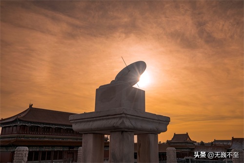 太和殿外的月台左右列有铜制赑屃、仙鹤、日晷一对,取龟鹤延年,江山社稷万代相传之意。而日晷则是利用太阳投影来测定划分时刻的古代时钟。