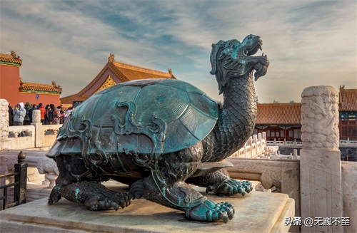 这个铜龟长着龙头,是龙生九子之一的赑屃,又名霸下。形似龟,好负重,长年累月地驮载着石碑,俗称“神龟驼碑”,另一方面,又具有非常重要的文化意义。象征长寿吉祥,并带有地位级别、图腾崇拜、巫术崇拜等方面的涵义。据说触摸它能带给人福气。