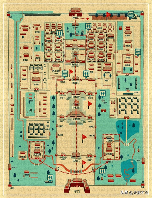 故宫规模宏伟,布局严整,建筑精美,富丽华贵,从天安门进入故宫后,哪怕是一路粗略游览都需三个小时左右,所以每次游故宫都总感觉时间不够,如果有机会、有时间重游,带上游览导图,针对性地参观方是最佳方式。