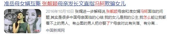 消息来源:2016年10月10日一中国新闻网一准岳母女婿互撕 张靓颖母亲发长文直指冯轲欺骗女儿