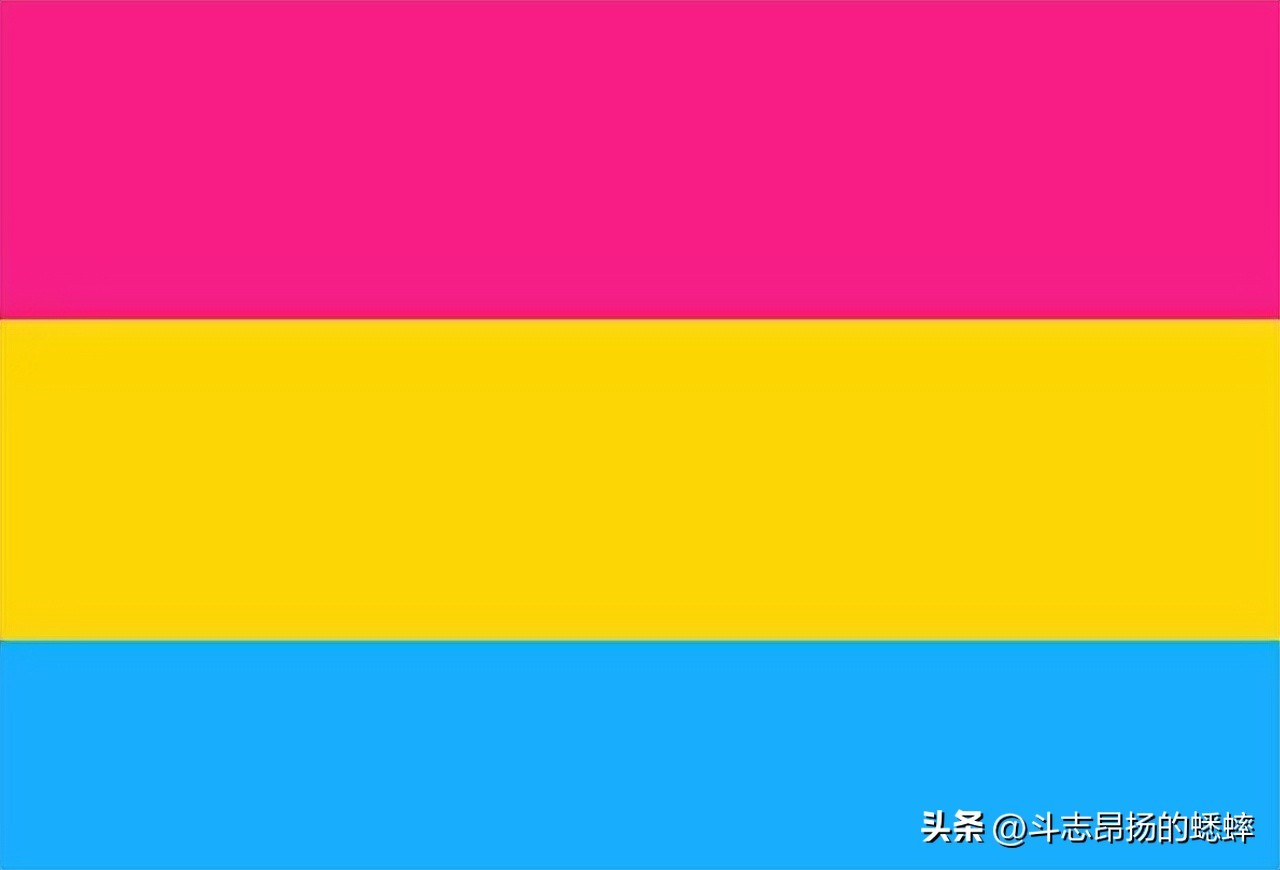像大多数性取向一样,泛性恋者有一面旗帜,可以让他们自豪地表达自己。它有三种颜色叠加在一起:顶部是粉色,中间是黄色,底部是蓝色。