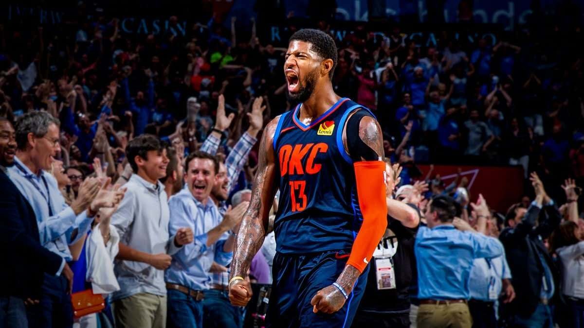 2018-19赛季,对于保罗-乔治来说是生涯目前为止最为高光的一个赛季,那时威斯布鲁克将雷霆的主导权交给了他,在俄城他已经成了城市的英雄。18-19赛季的全明星赛之前,保罗-乔治的表现可以用惊为天人来形容也并不为过,不仅基础表现极为稳定高效,还屡次上演单骑救主的精彩戏码,多场比赛最后时刻完成绝杀。一度也将雷霆带到了西部第二的位置并多次力克强敌,自己也一度有机会与字母哥竞争常规赛MVP。