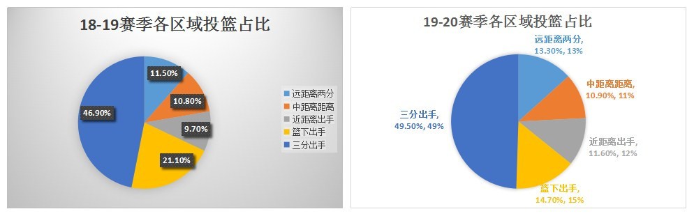 近两赛季乔治各区域出手对比图