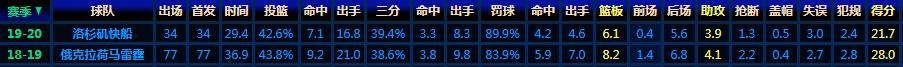 近两赛季乔治的基础数据统计