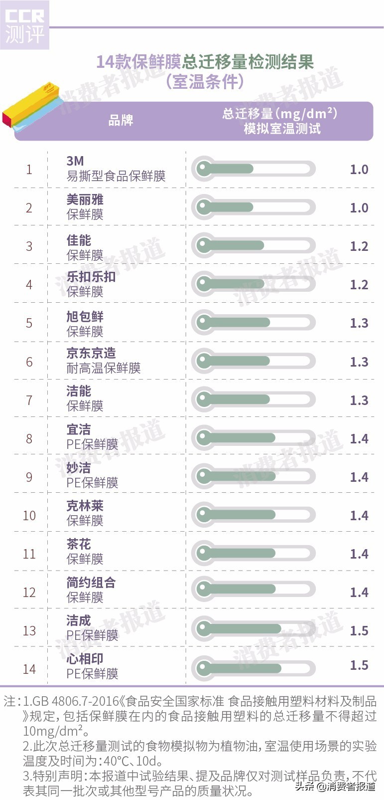 2019年4月,消道长向第三方权威检测机构送检了14款保鲜膜,对比测试其总迁移量、塑化剂等安全指标。
