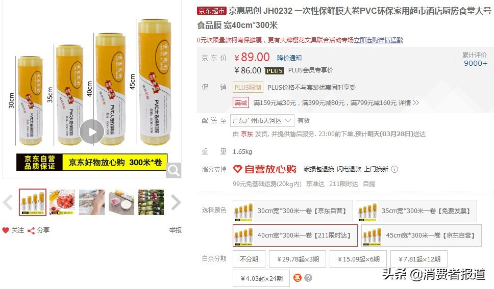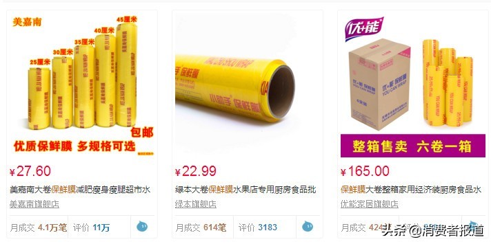 但这并不代表国内PVC保鲜膜无人使用。消道长查询多个电商平台,发现天猫、苏宁易购、京东等平台上仍有大量PVC保鲜膜在售。