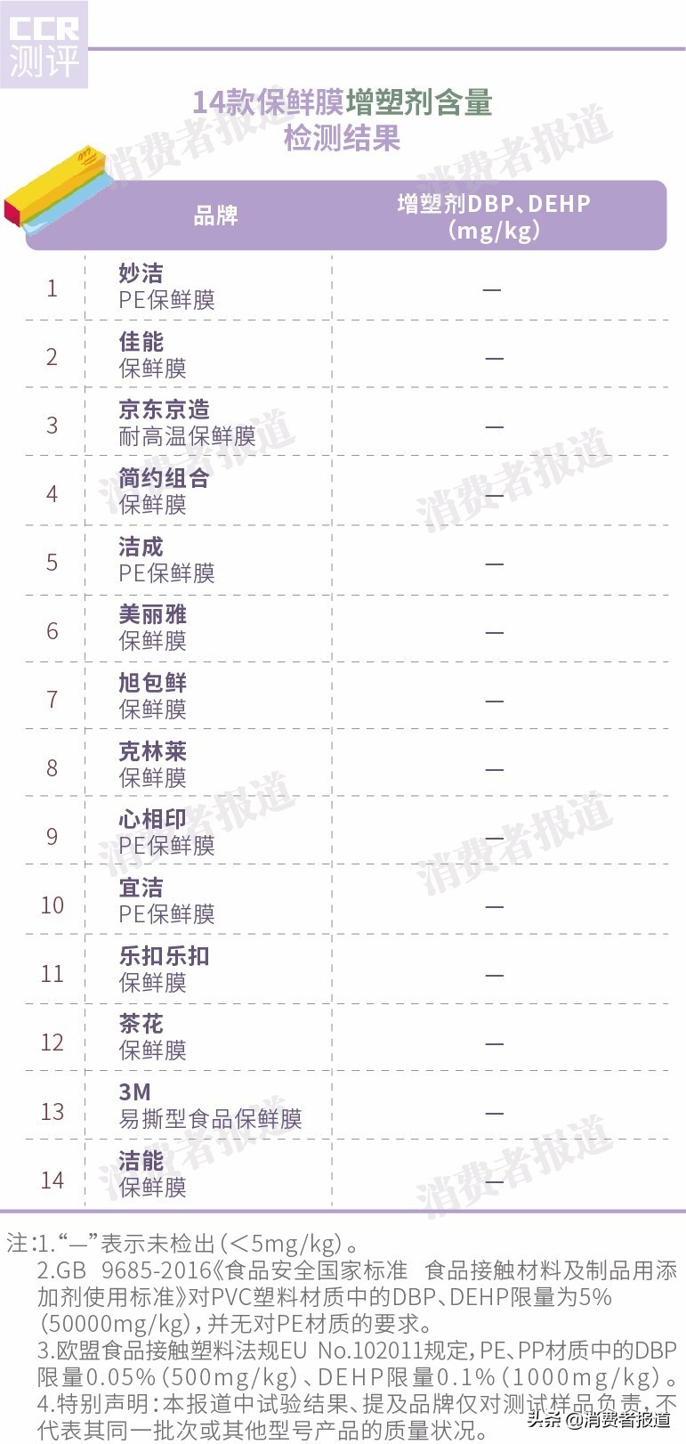 14款保鲜膜均未检出两种增塑剂DBP、DEHP