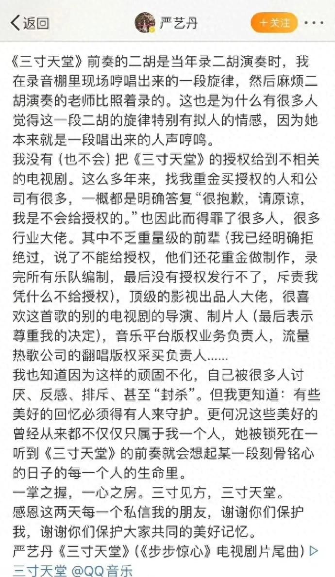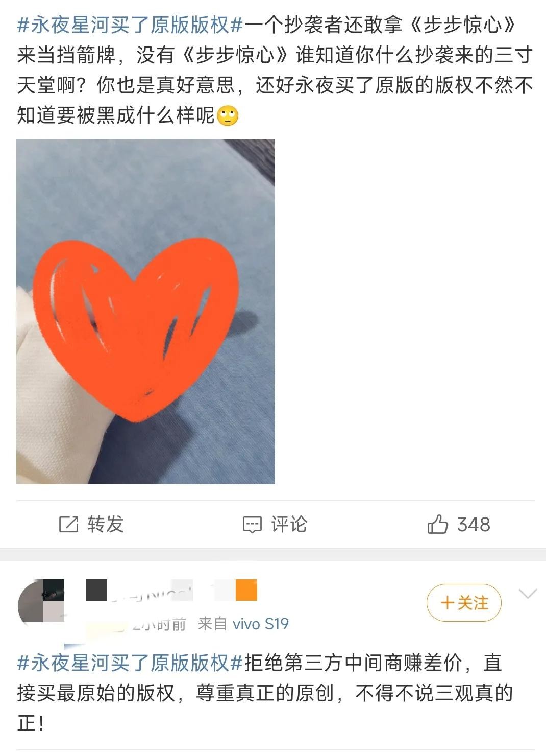 原作者严艺丹也是深夜发文回应,结果热度发酵后又删除了这一微博,原来严艺丹也被指抄袭,而《永夜星河》买了原版版权。