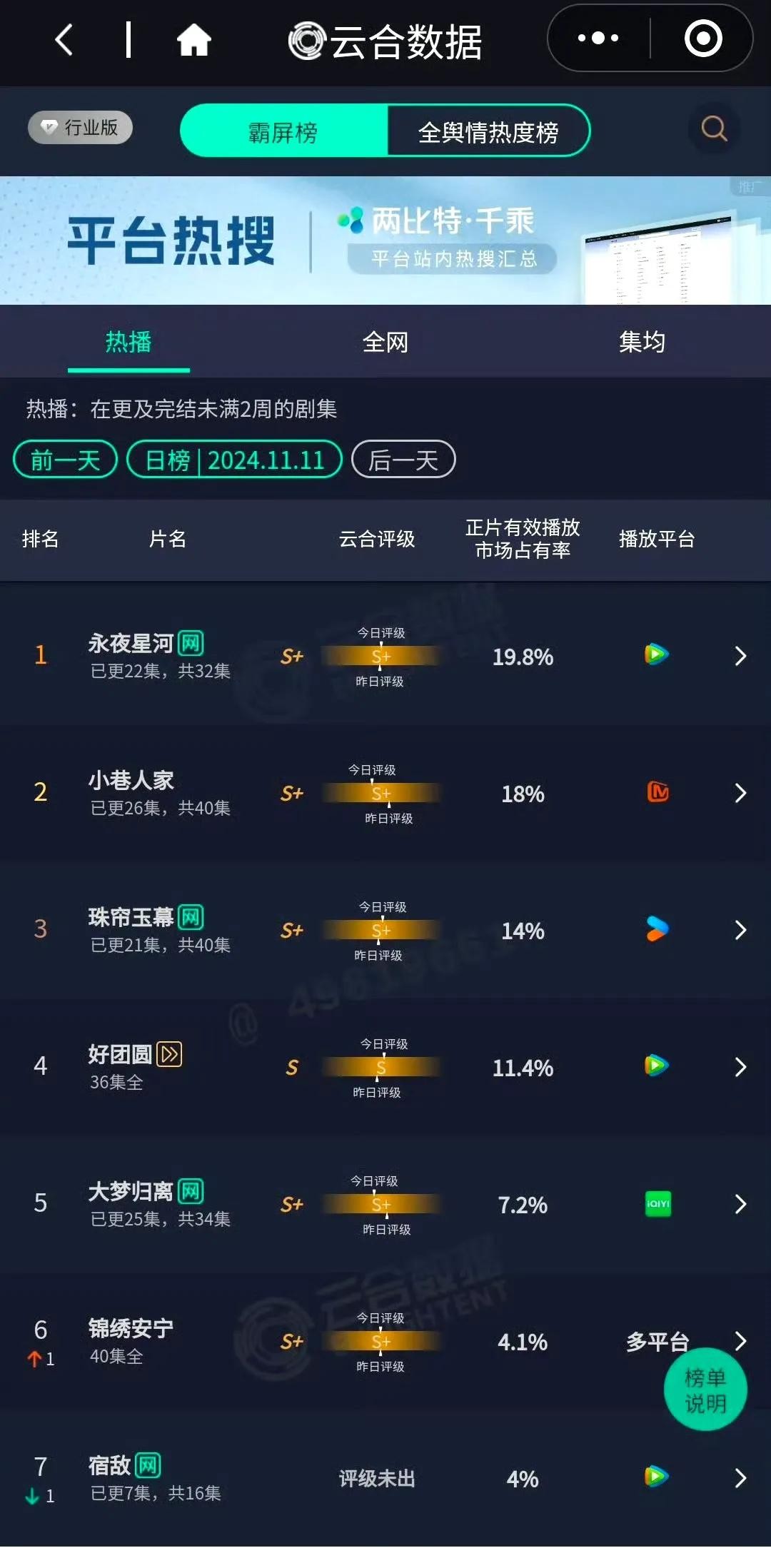 《永夜星河》也快完结了,今天的热度也是居高不下,看来非常成功!