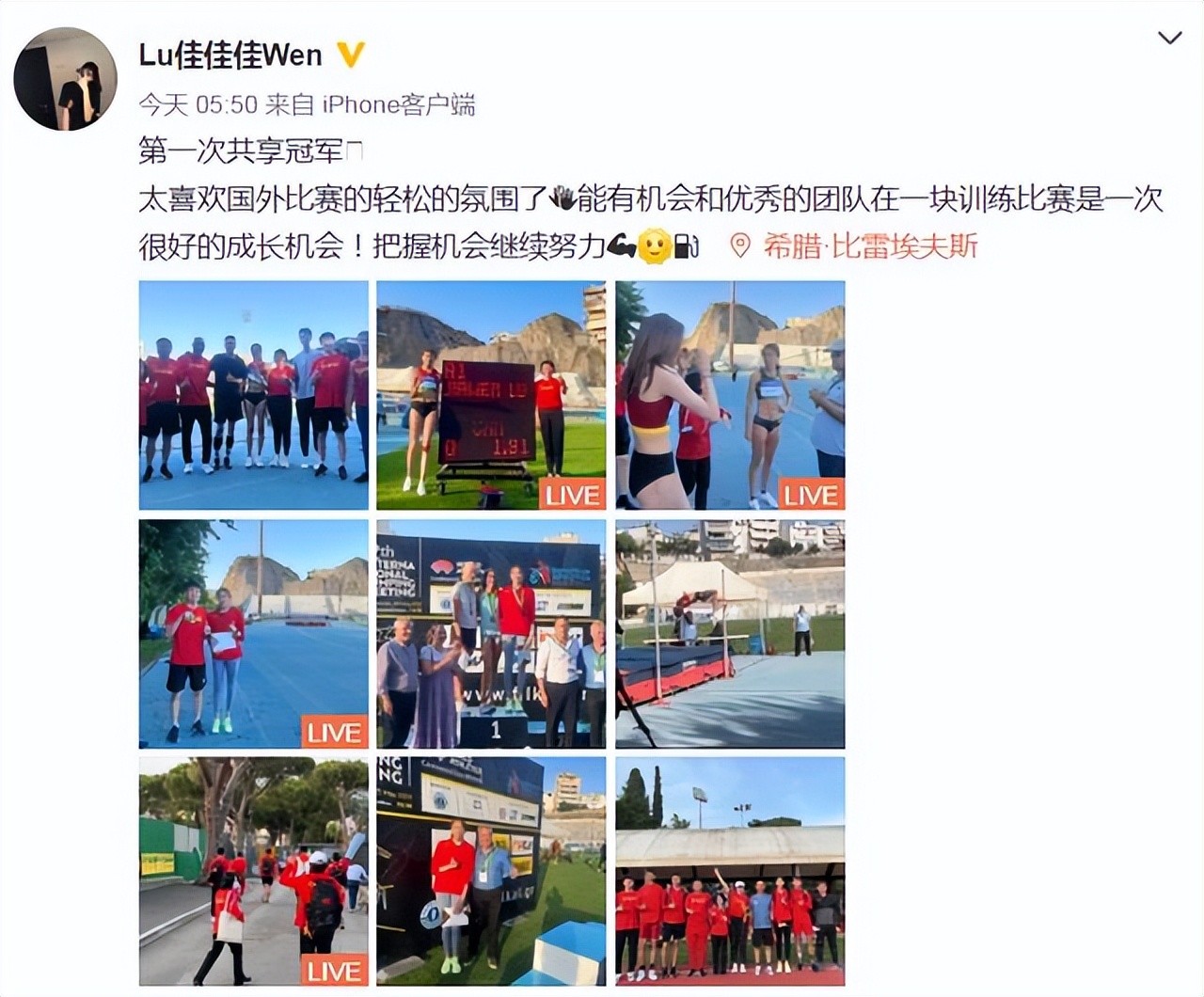 和自己的冠军成绩合影时,陆佳雯大长腿抢镜,还有A4腰。