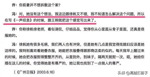 徐帆也从心灵上依赖着冯小刚,说:“他领养了我的心灵”。