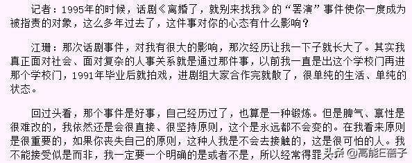 多年后,谈到此事,江珊称自己当时过于单纯,今后将会继续坚持原则。