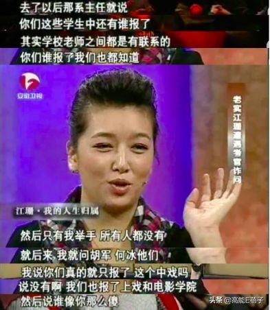 虽然长了一张女神脸,但江珊却有点“憨”。中戏第三试时,系主任把所有的考生集合,问有谁报了其他院校?隐瞒了老师也会知道,言下之意就是坦白从宽。