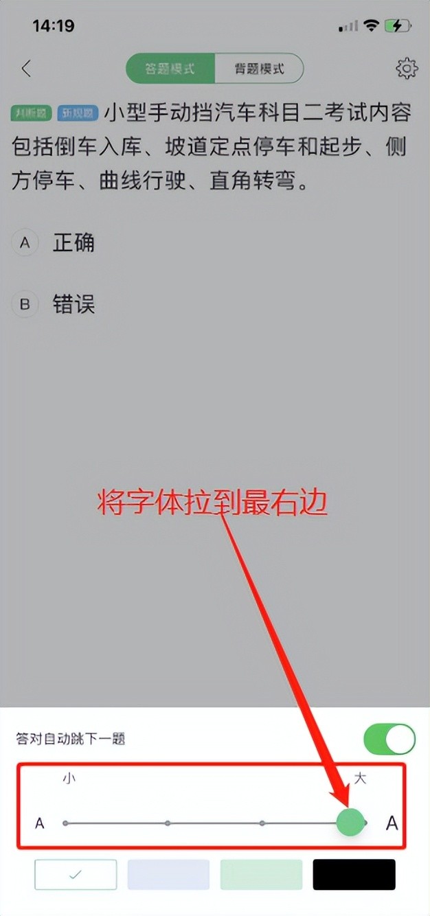 另外,年纪大的人怎么练题呢?在练题里面,右上角有一个设置,点击就可以设置字体大小啦~