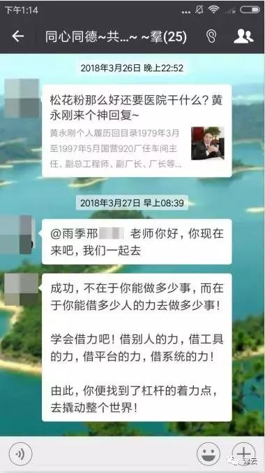 石头向津云记者提供了相关材料,在新时代营销员夏某和邢女士的微信聊天记录中显示,2018年3月27日,夏某曾在一个微信群里邀请邢女士一起参加国珍松花粉“会议”。会上新时代健康产业公司“四星领导人”冯某冰为邢女士等数十人进行了现场“洗脑”。