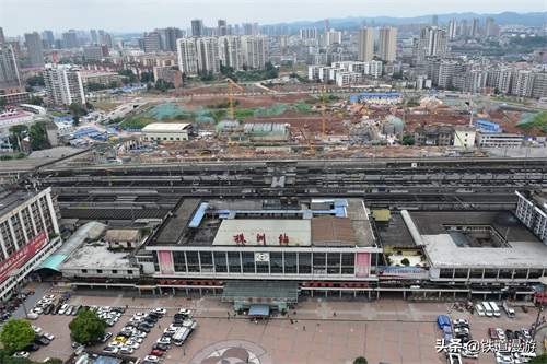2017年3月30日上午,株洲站改建工程项目正式动工。但还有由于各种原因,虽然说动工了,但是整体工程依然是十分的缓慢。一直到今年年初,株洲市正式下达通知,株洲站进入全面扩能改造状态,先期将长株潭城际场建设好,长株潭城际大丰到株洲南站停运配合株洲站城际场施工,在年底将城际场建成通车。建成之后再逐步改造原来的老站房。俯瞰株洲站改造现场