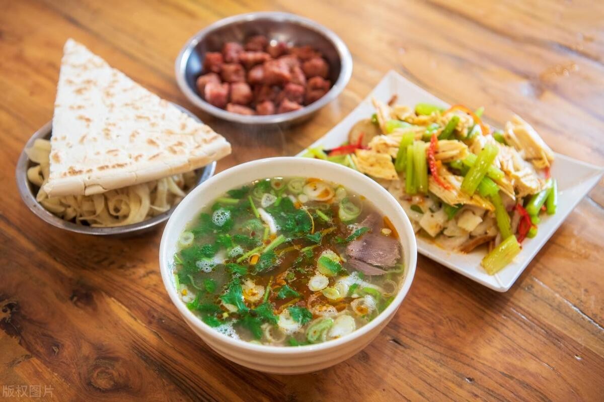 3. 羊肉汤:和牛肉汤做法类似哦,不过它选用的是羊肉和羊骨来熬汤,熬出来的汤白得像奶一样,羊肉鲜嫩还没有膻味,搭配上饼丝或者烧饼一起吃,那滋味,别有一番独特风味