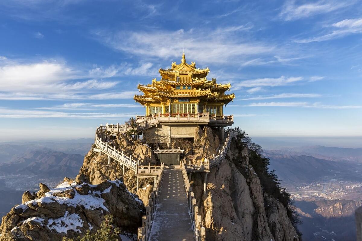 8. 老君山:道教名山,以独特的峰林景观闻名遐迩。山上的建筑风格独特,金顶道观群在云海中若隐若现,宛如仙境一般。尤其是来这儿观赏日出、云海和雪景,那景色真的会让你终身难忘。