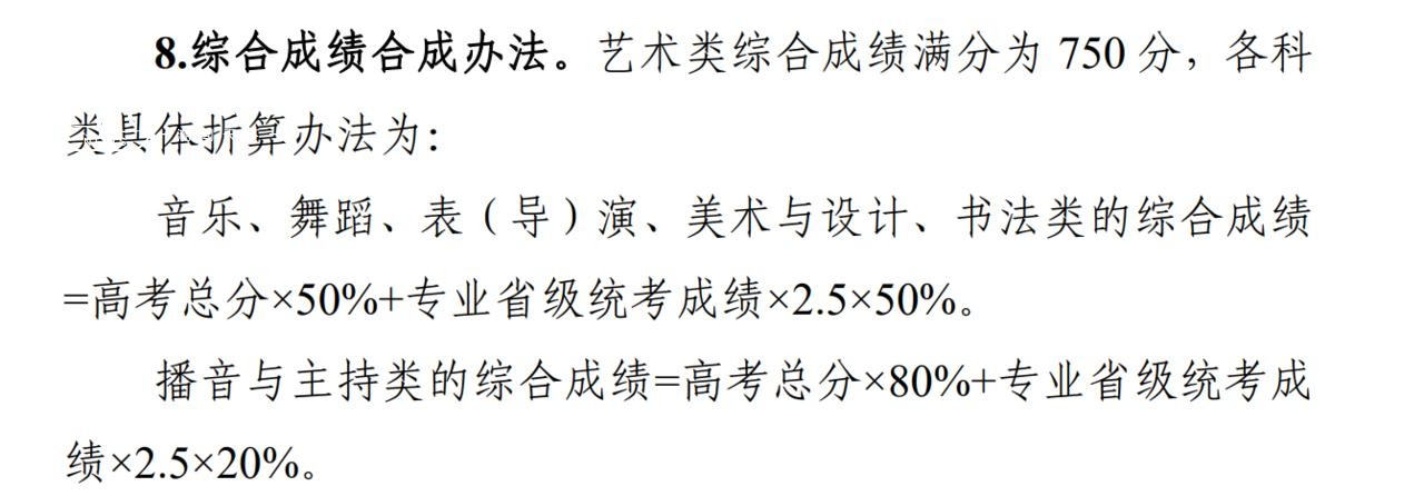 2024年,各省艺考新政落地实行。以浙江为例,报考校考专业的考生,在高考文化课成绩原则上要达到浙江省普通类一段线、省级统考成绩合格且达到学校划定的最低成绩要求。最后的综合成绩中,音乐、舞蹈、表(导)演、美术与设计、书法类的高考成绩占比为50%,播音主持类高考成绩占比更是达到了80%。