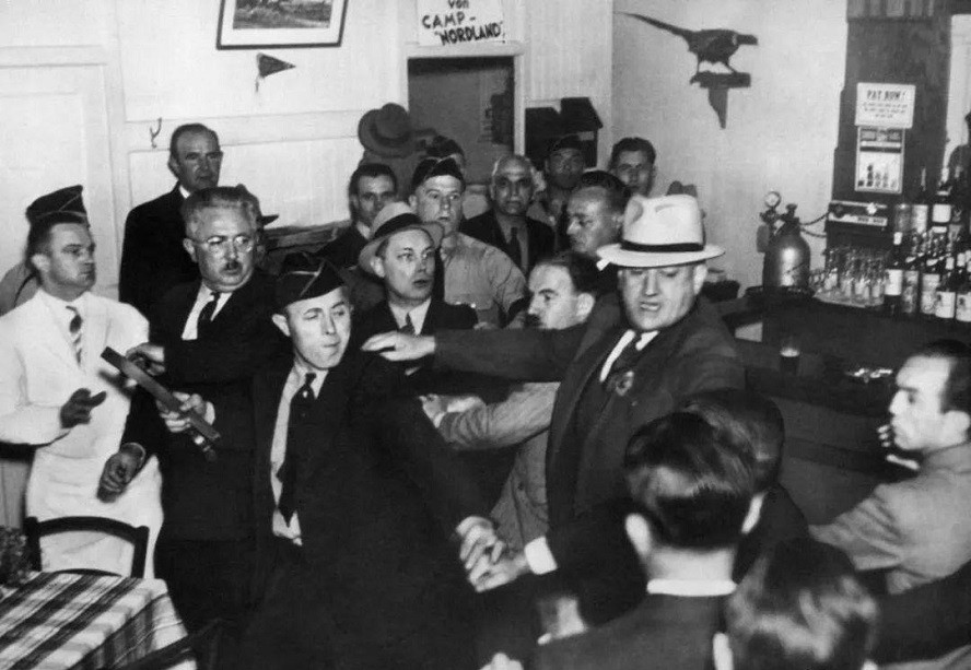 弗里兹·库恩,这个德裔美国人妄图将自己塑造成希特勒第三帝国的美国分支,他们各种学习复制纳粹集会、纳粹装饰、敬纳粹礼、唱德国歌,组织自己的“冲锋队”,妄图在美国土地上建立德裔社区。