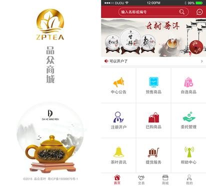 据了解,品众商城APP适合多版本的安卓系统,安卓平台各大应用市场直接搜索“品众商城”就可以下载,用户下载安装后,即可实现在线购物、产品委托交易、茶叶行情查询等功能。