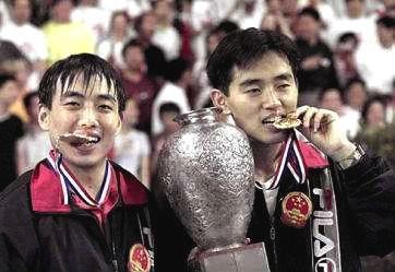 中国男队从1995年打翻身仗,在家门口夺得七项冠军开始,孔令辉和刘国梁就成为中国男队的领军人物,开创了一个长达七八年,横跨两个奥运周期的孔刘时代。
